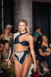 Wanting a High-waisted Bottom? Well.. Heres a unique piece for you... Our “California” bikini bottom, is a fashionable statement piece which features a flattering high-waisted design, cheeky bum coverage, with see-through snake mesh paneling.