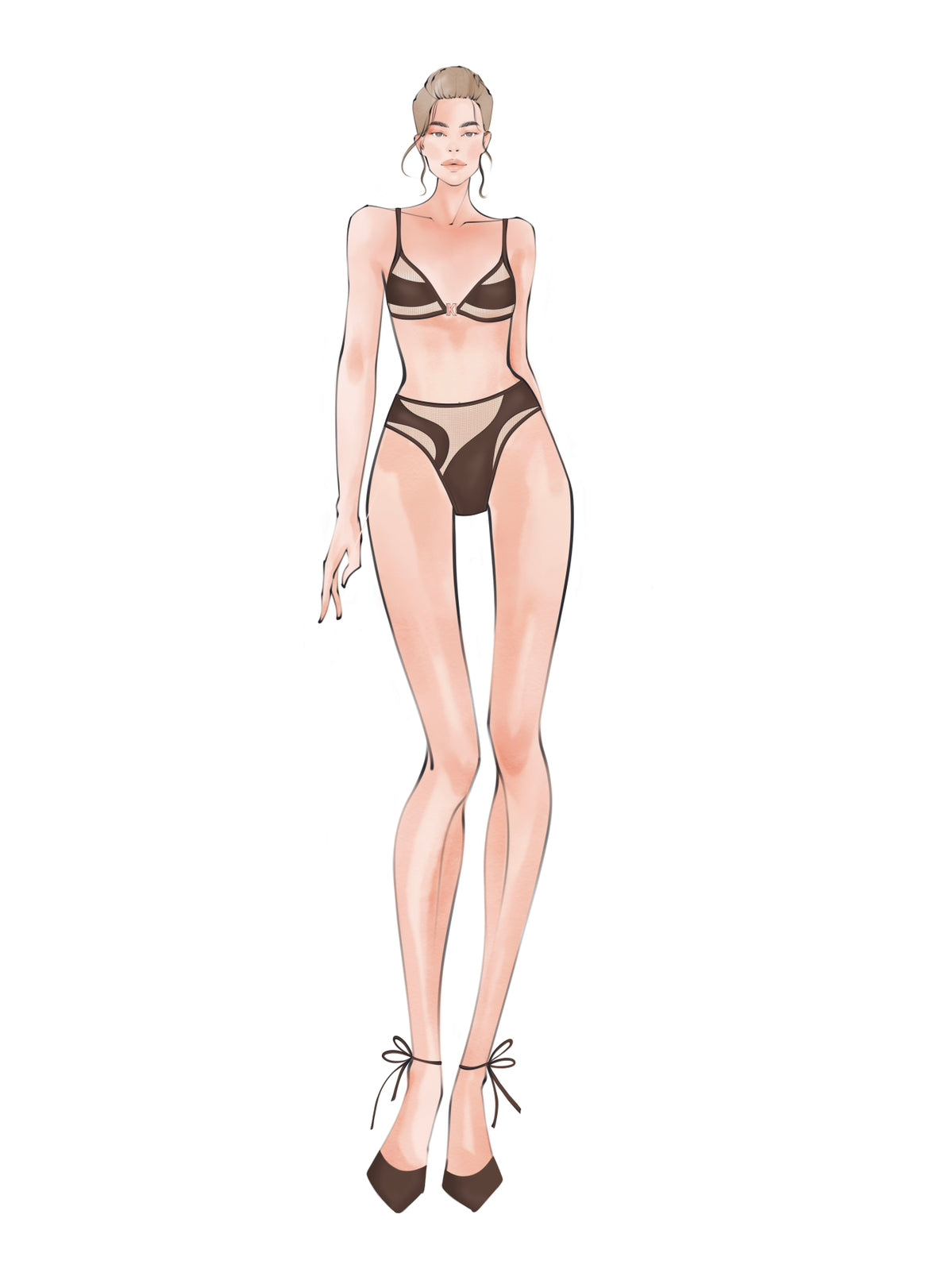 The elegant and classy nature of our “CHICAGO” triangle top is showcased through its attention to detail. It features a minimalistic and tiny design, with thin triangular cups that provide moderate coverage. The mesh panels are strategically placed to create a stylish contrast against the solid eco friendly fabric. With a signature K hardware detailing adding a touch of sophistication.