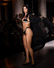 Introducing our “NOBU” high-waisted Brazilian cut scrunch bum swimwear bottoms, designed to accentuate your natural curves. The slight mesh panelling at the front adds a subtle hint glimpses of sun-kissed skin. With signature K hardware detailing our NOBU piece exudes a perfect blend of sophistication and elegance. Get ready to make a stylish statement by the water's edge.